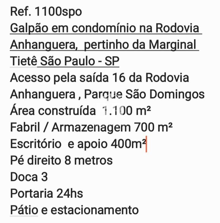 O Pavilhão Industrial localizado no bairro Vila Pirituba em São Paulo-SP é a escolha perfeita para empresas que buscam um espaço amplo e bem localizado para suas operações. Com uma área construída de 1100m² e estacionamento disponível, o pavilhão oferece toda a infraestrutura necessária para o seu negócio.